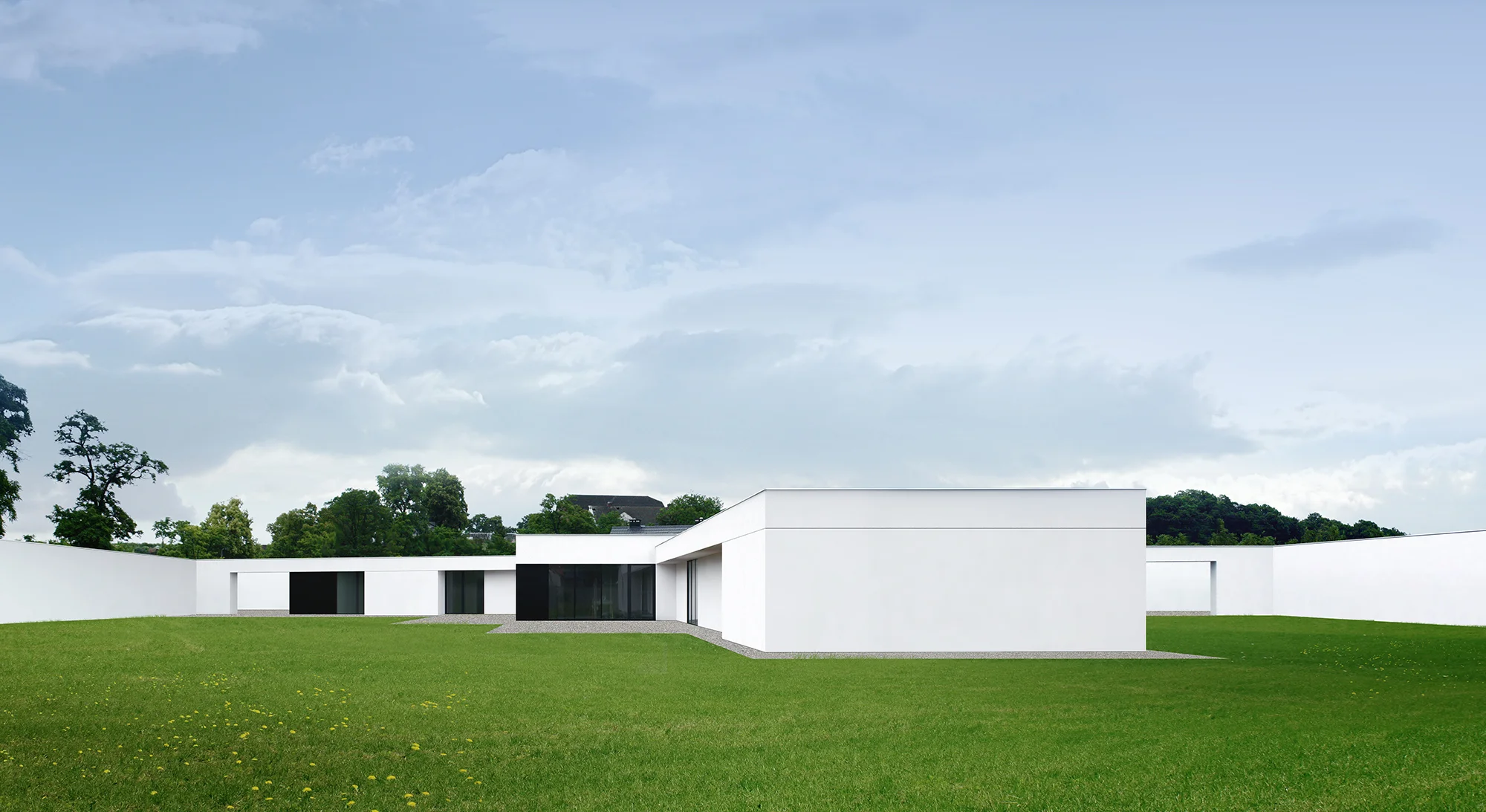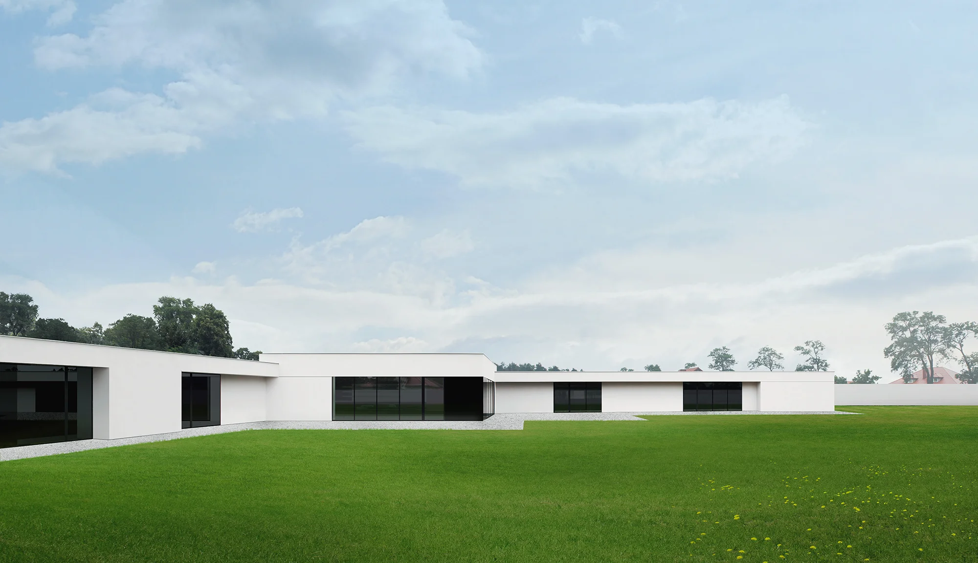 Zapewnienie lokatorom prywatności stało się głównym problemem projektowym do rozwiązania. Stało się jasne, że dom będzie wymagał bariery w postaci muru, który odgrodzi świat jego mieszkańców od otoczenia. Mur ze względu na swoją wielkość i skalę stał się jednym z głównych elementów zagospodarowania terenu, dlatego postanowiliśmy że stanie się równoprawną częścią projektu. Ogrodzenie zostało przyklejone do budynku, co pozwoliło na dużo lepsze wykorzystanie terenu. Od strony północnej mur nie posiada okien, natomiast od strony południowej znajdują się duże okna z których rozpościera się piękny widok na ogród.